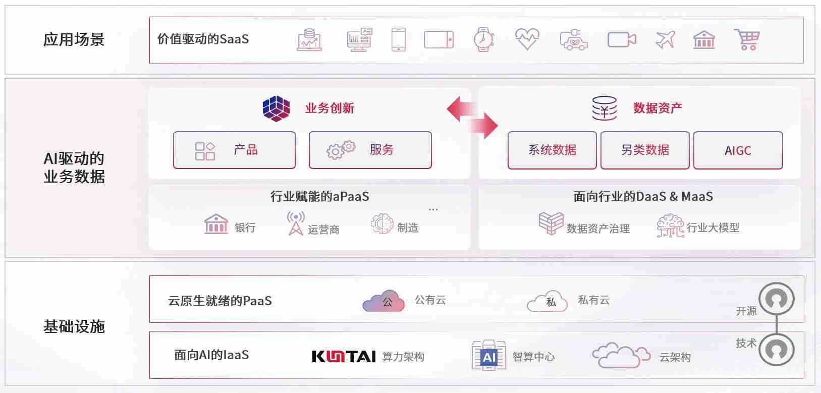 数字时代,,,围绕企业数字化转型的关键要素,,亚星会员数码开创性的提出数云融合战略和技术体系框架,,,着力在云原生、、、数字原生、、AI原生和信创产业上架构产品和服务能力,,,,为处在不同数字化转型阶段的快消零售、、、汽车、、金融、、、、医疗、、政企、、教育、、、运营商等行业客户提供泛在的敏捷IT能力和融合的数据驱动能力,,,构建跨界融合创新的数字业务场景和新业务模式,,,助力企业级客户建立面向未来的核心能力和竞争优势,,全面推动社会的数字化、、、智能化转型升级。。。